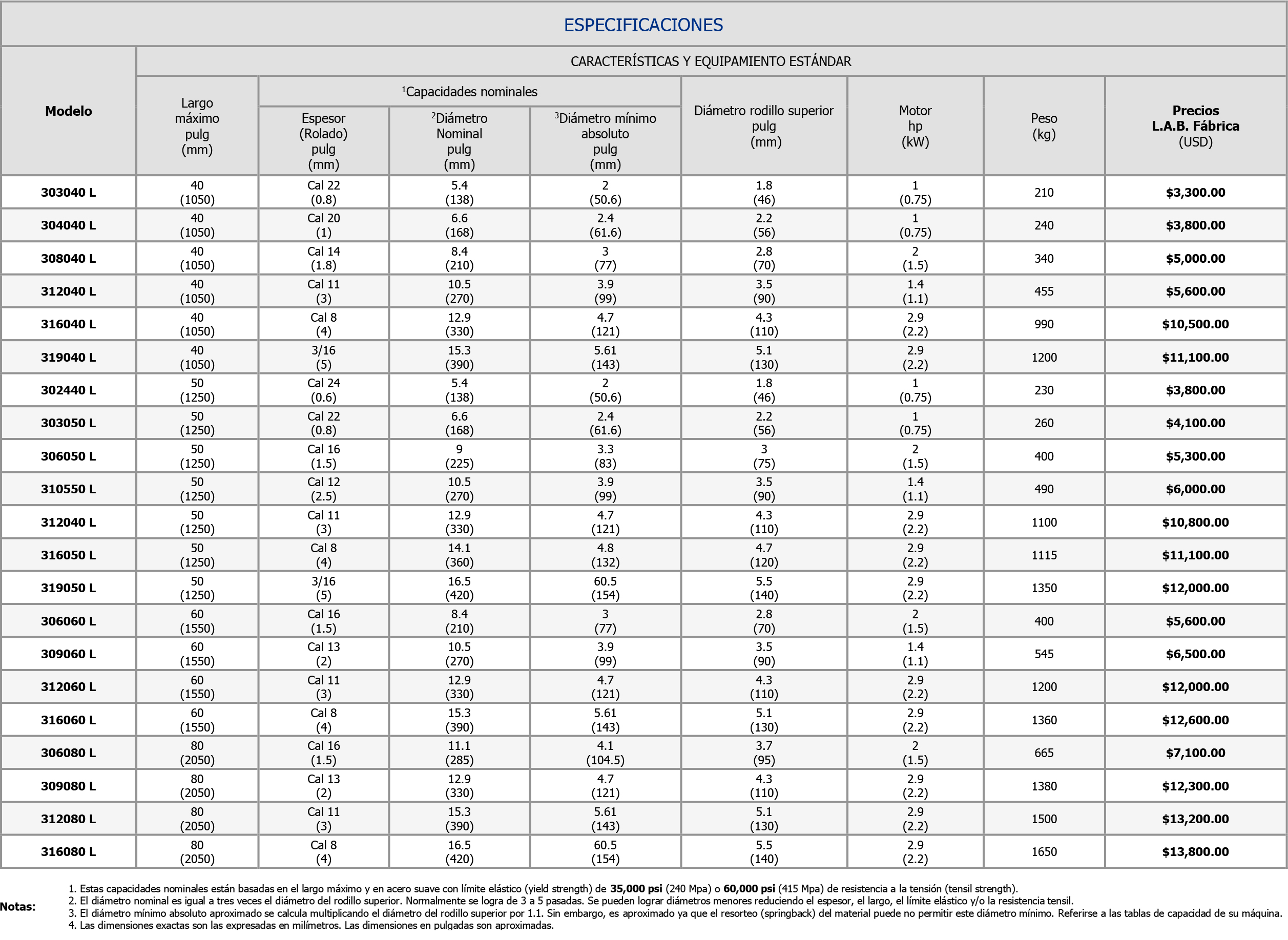 Roladoras para Placa